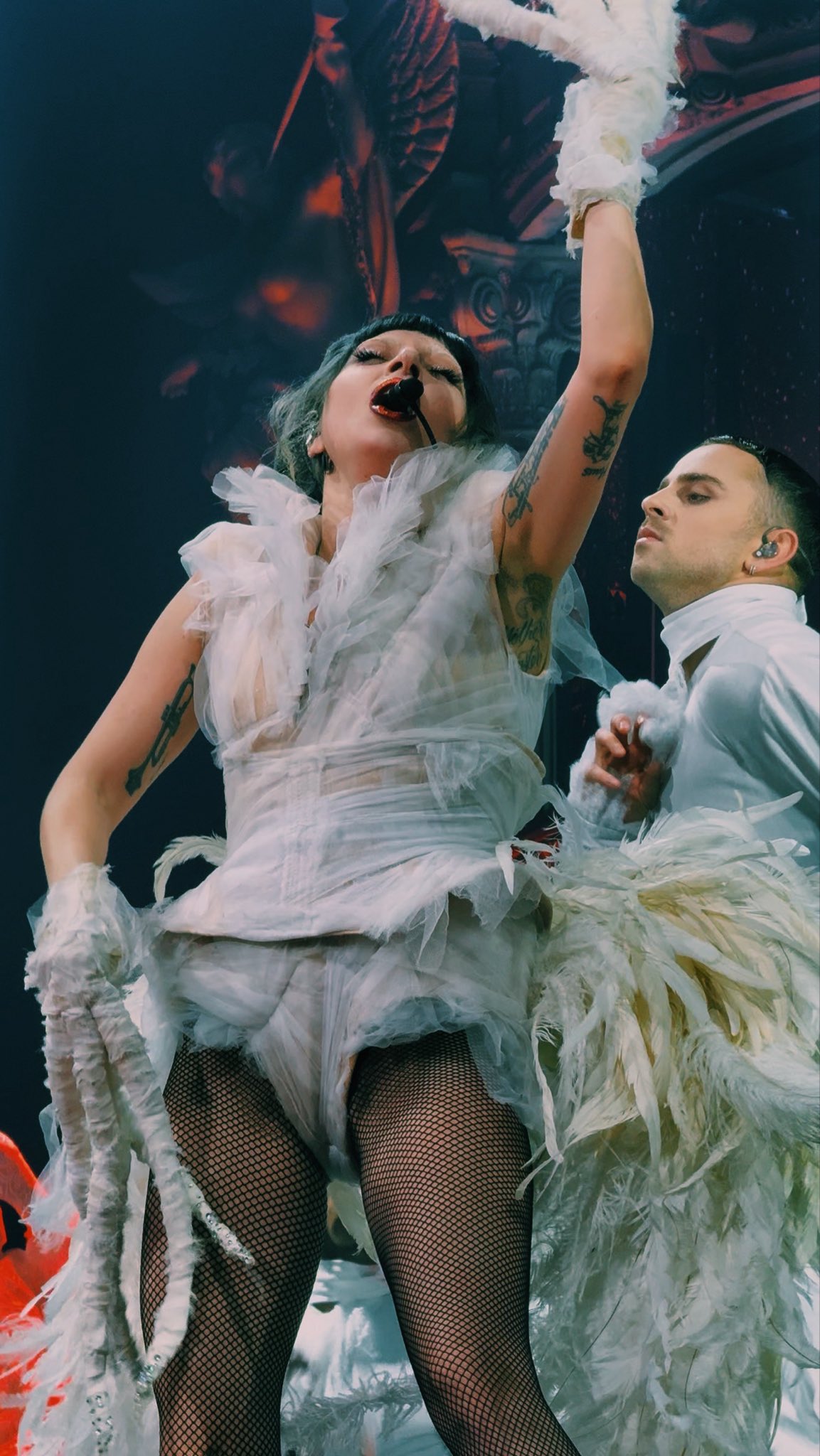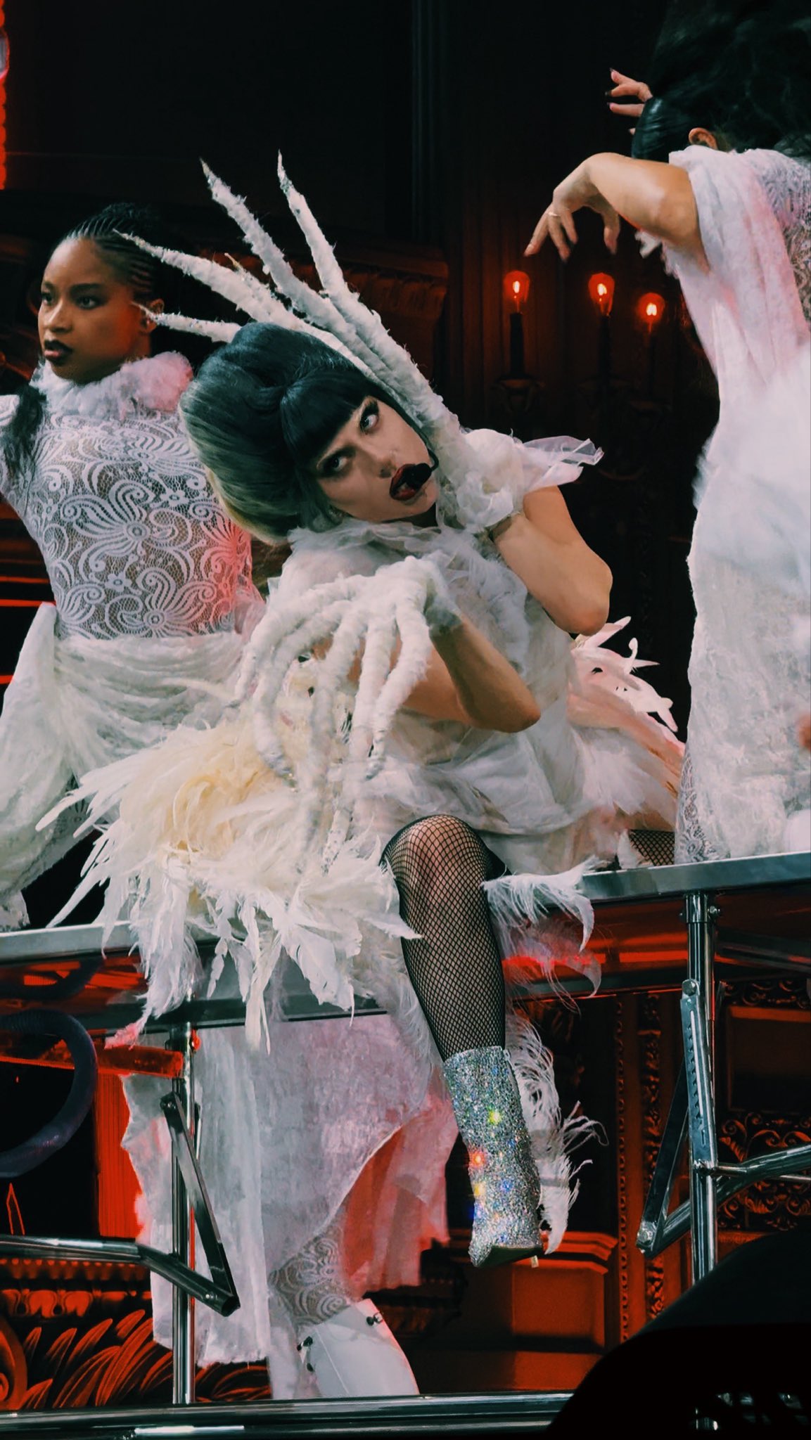 Entre fuegos, bailarines entregados a la teatralidad de Madre Gaga, un decorado exquisito y un hilo narrativo. Así se desarrolló el concierto del lunes 27, con un total de cinco actos con sus respectivos títulos: De terciopelo y vicio, Y ella cayó en un sueño gótico, La hermosa pesadilla que sabe su nombre, Cada tablero de ajedrez tiene dos reinas y El aria eterna del corazón del monstruo.