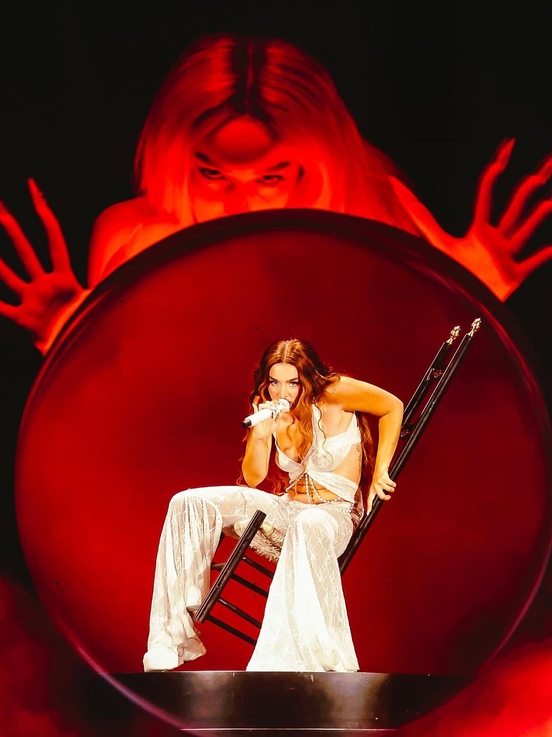 Es como hacer un videoclip, pero en directo, a tiempo real. Tienes que contar una historia en 3 minutos, que es lo que dura la canción. Tienes que intentar que lo que se pone en pantallas, la iluminación, los efectos especiales, los props que sacas al escenario… que todo tenga una coherencia estética y visual.
