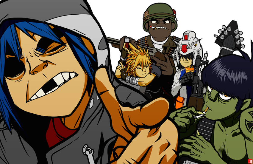 Gorillaz, la popular banda virtual británica creada en 1998, sigue compuesta por Damon Albarn y Jamie Hewlett. De igual manera, encarnan a miembros ficticios que suelen protagonizar sus videclips: 2-D, Noodle, Murdoc Niccals y Russel Hobbs.